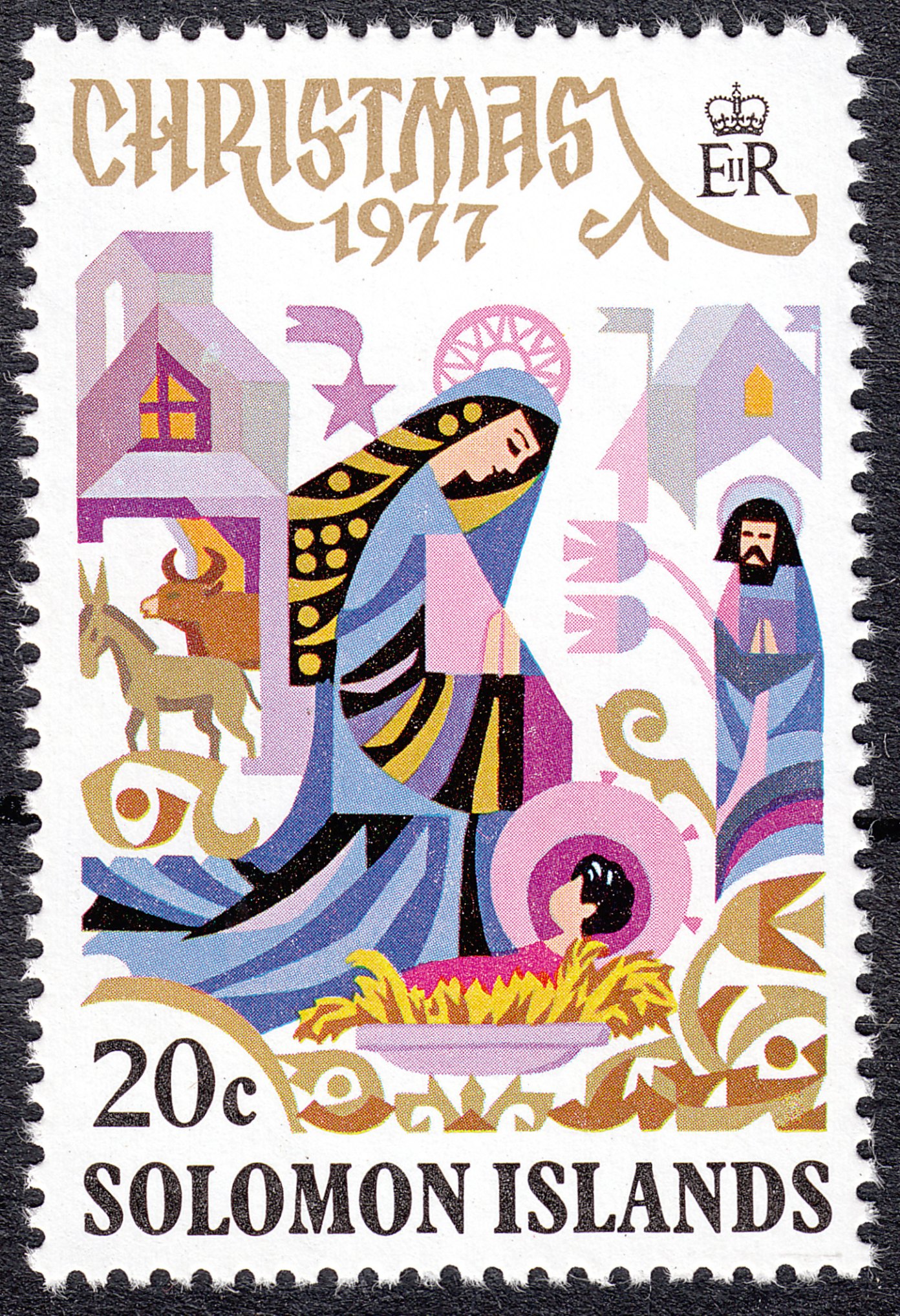 Der Darstellung der Geburt Jesu geht im Lukasevangelium die Verheißung der Geburt an Maria durch den Engel Gabriel voraus. Hier eine Sondermarke aus Antigua, die diese Szene zeigt: