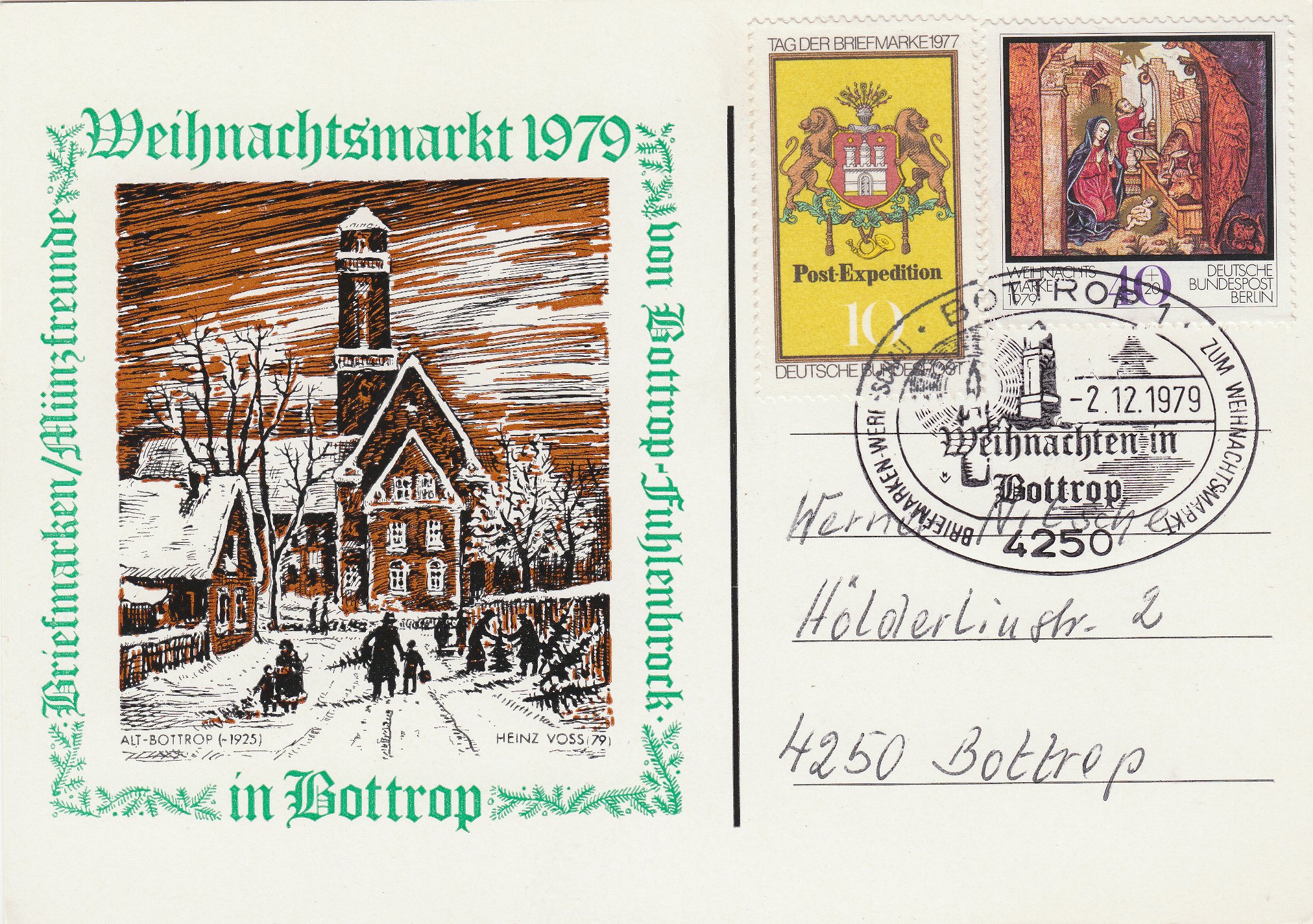 Sonderstempel vom 02.12.1979 zum Weihnachtsmarkt in Bottrop auf der Weihnachtsmarke 1979, Ausgabe Berlin: