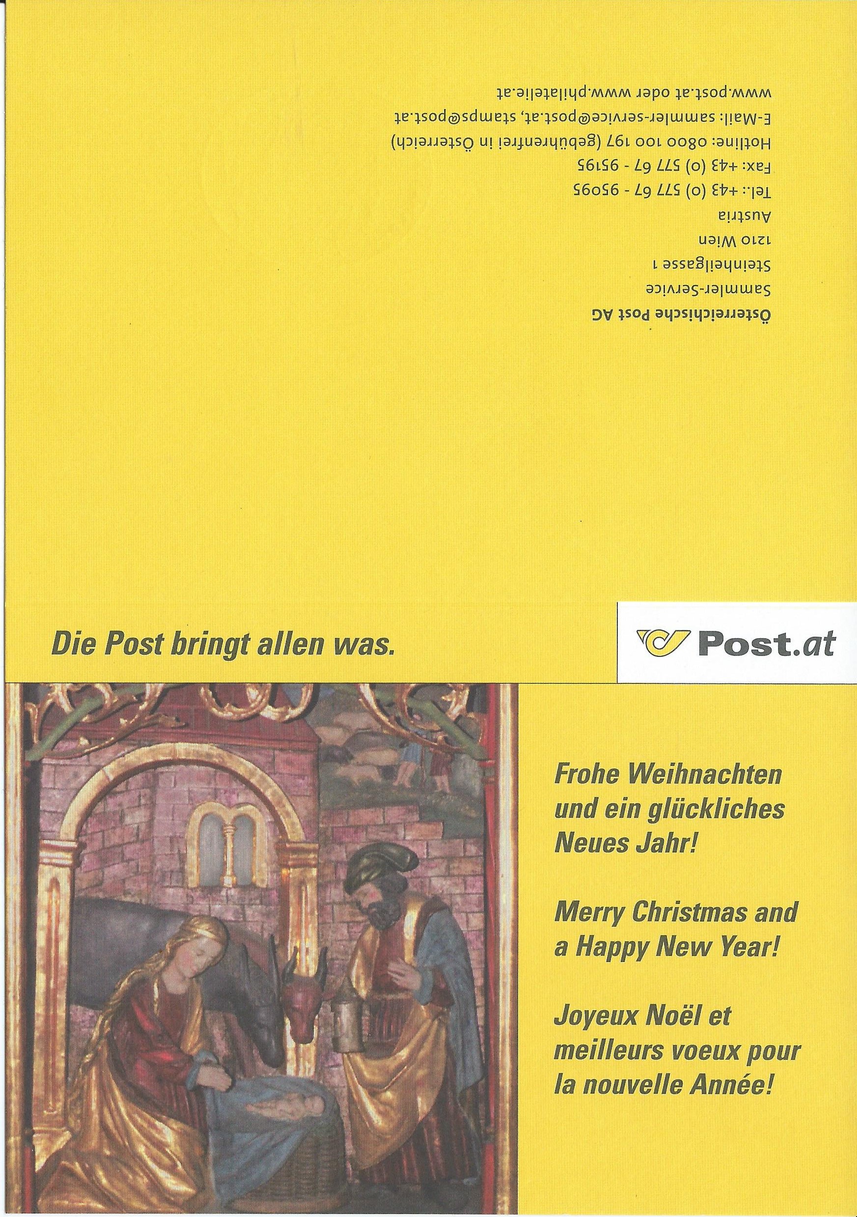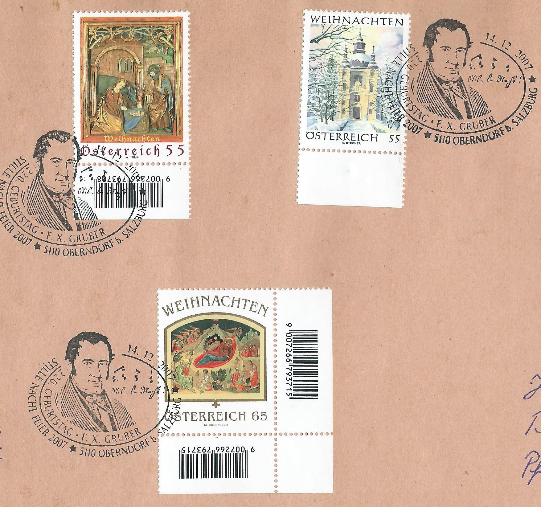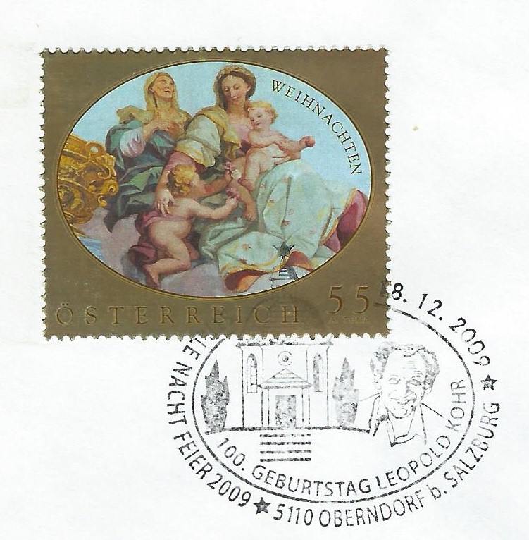 aus unserem Nachbarland Österreich habe ich einige wenige Weihnachtsmarken mit entsprechenden Stempeln, die ich hier gerne zeigen möchte. Da ich das Briefmarkenland selber nicht aktiv sammle, habe ich auch keinen Katalog, um die Michelnummern angeben zu können. Aber trotzdem sollen die Marken gezeigt werden: