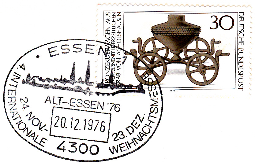 Sonderstempel aus Essen vom 20.12.1976 zur 4. Internationalen Weihnachtsmesse in Essen. Er hat das gleiche Motiv wie der bereits gezeigte Stempel von 1973.