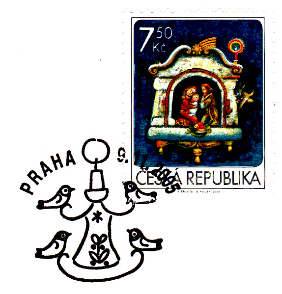 Aus Tschechien kommt diese Weihnachtsmarke zu 7,50 Kronen (MiNr 454) vom 9.11.2005. Sie zeigt die Heilige Familie.