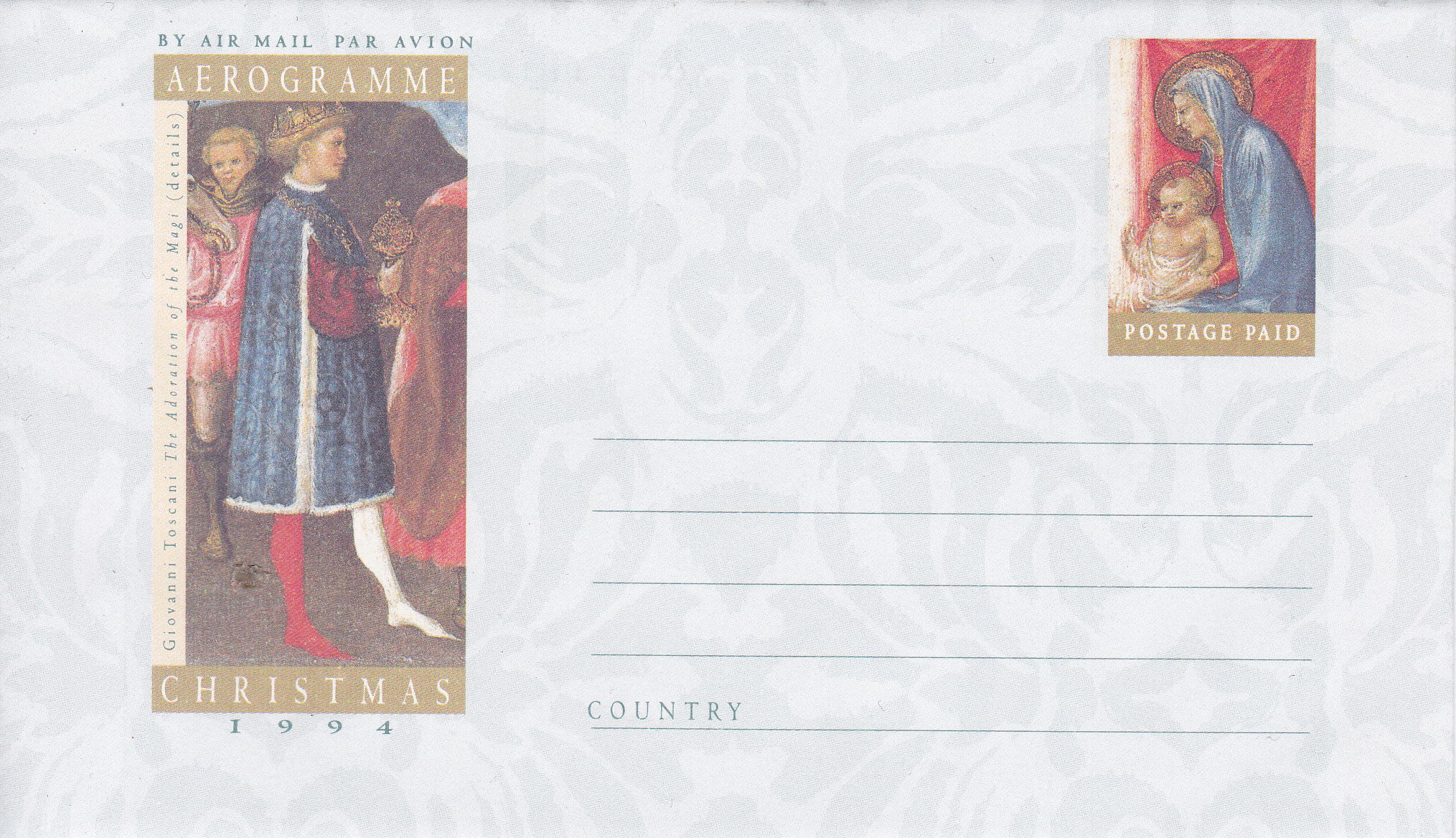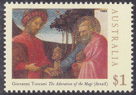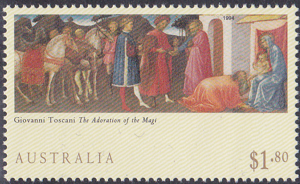 Die Weihnachtsmarken 1994 aus Australien zeigen die Anbetung der Heiligen Drei Könige nach einem Gemälde von Giovanni Toscani (1372-1430, italienischer Maler). Die zur Serie gehörenden Ganzsachenpostkarten wurden hier bereits gezeigt.