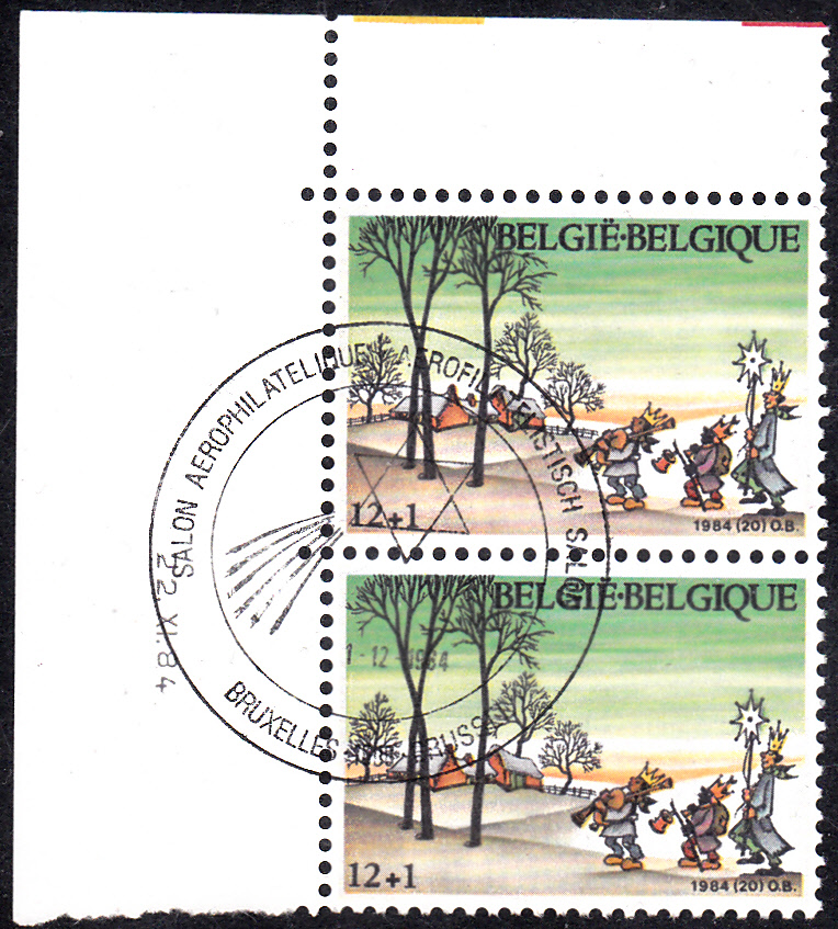 Die Marke aus Belgien zu "Weihnachten und Neujahr" 1984 (MiNr 2207) zeigt im Markenbild eine Darstellung zum Thema "Sternsinger".
