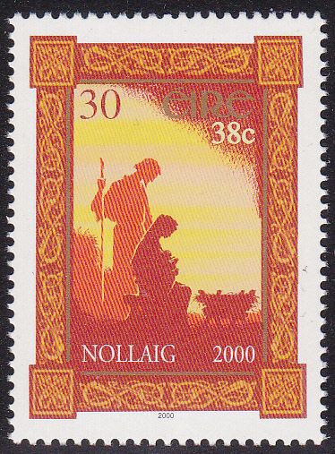 Es gibt auch noch eine kleinerer selbstklebende irische Marke zu Weihnachten 2000 (MiNr 1290) aus einem Markenheftchen. Diese hat das Motiv "Die Flucht nach Ägypten".