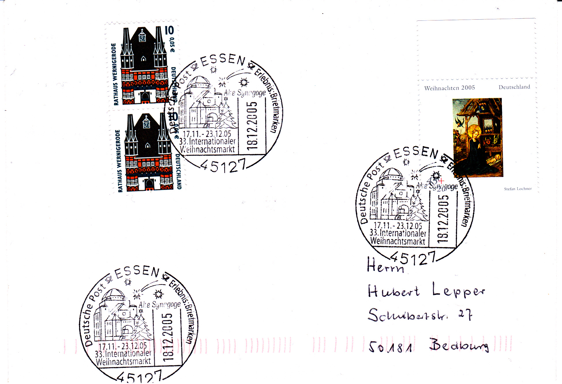 Zum 33. Internationalen Weihnachtsmarkt 2005 in Essen gab es neben den in diesem Forum bereits gezeigten Sonderstempel am 11.12.2005 auch noch den nun fogenden Stempel: