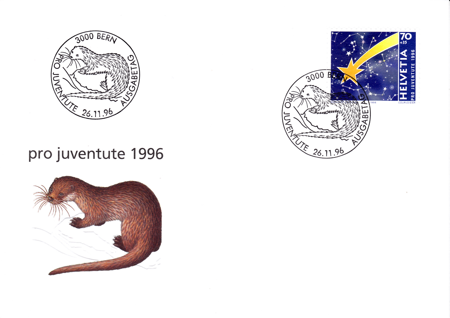 In den Serien "Pro Juventute" der Schweiz erscheint seit vielen Jahren auch immer eine Marke "Weihnachten". Hier zeige ich eine Marke aus dem Jahre 1996 (MiNr 1597) mit einem Weihnachtsstern vor Sternbildern.