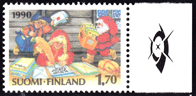 Aus Finnland kommt diese Weihnachtsmarke (MiNr 1124) aus dem Jahr 1990. Sie zeigt "Das Postamt des Weihnachtsmannes".