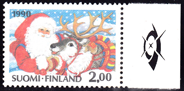 Es gibt noch eine zweite Marke aus Finnland (MiNr 1125) mit dem Weihnachtsmann und seinem Rentier.