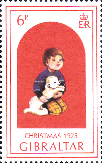 Eine Mutter mit zwei Kindern zeigt die nächste Marke der Serie aus Gibraltar (MiNr 331).