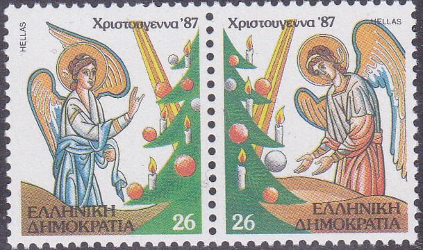 1987 sind in Griechenland zwei Weihnachtsmarken (MiNr 1678/1679) erschienen. Sie zeigen je einen Engel und einen halben Weihnachtsbaum und wurden zusammenhängend als Paar gedruckt.