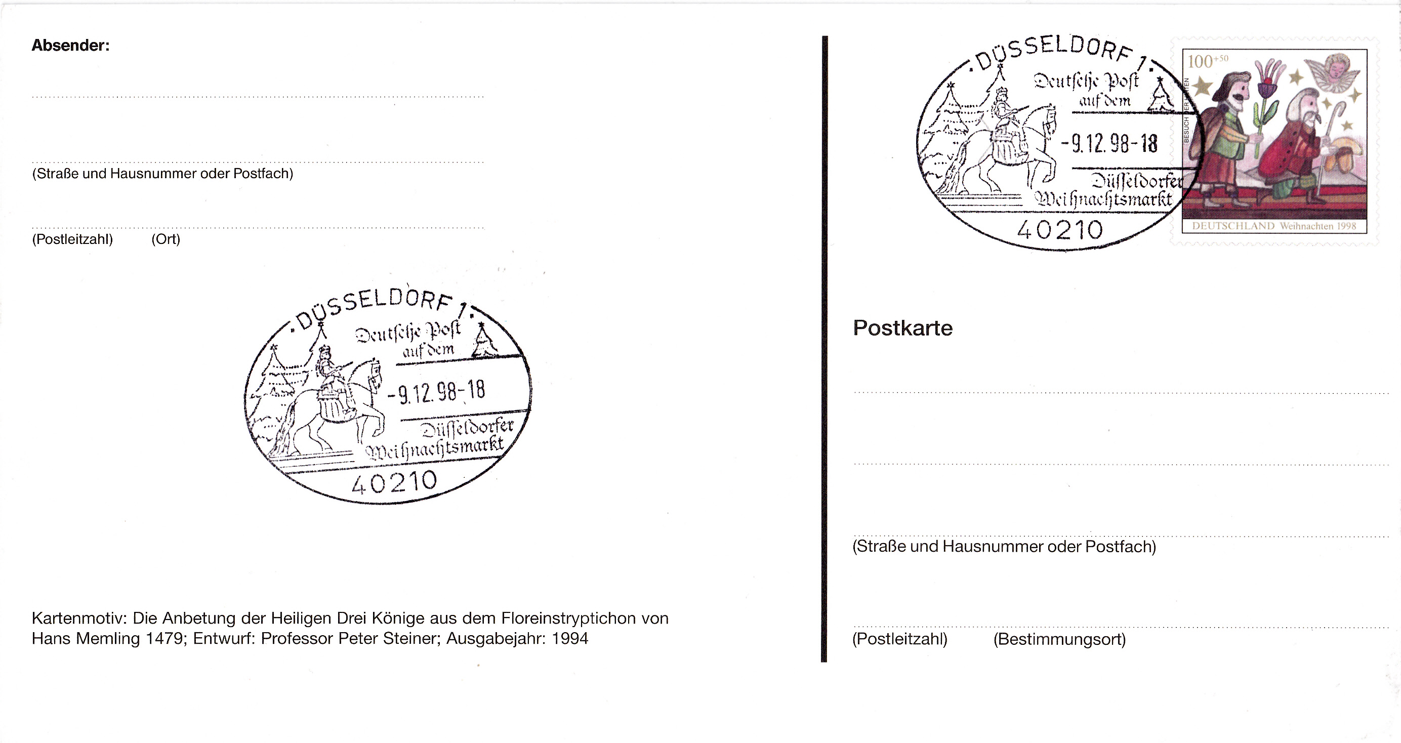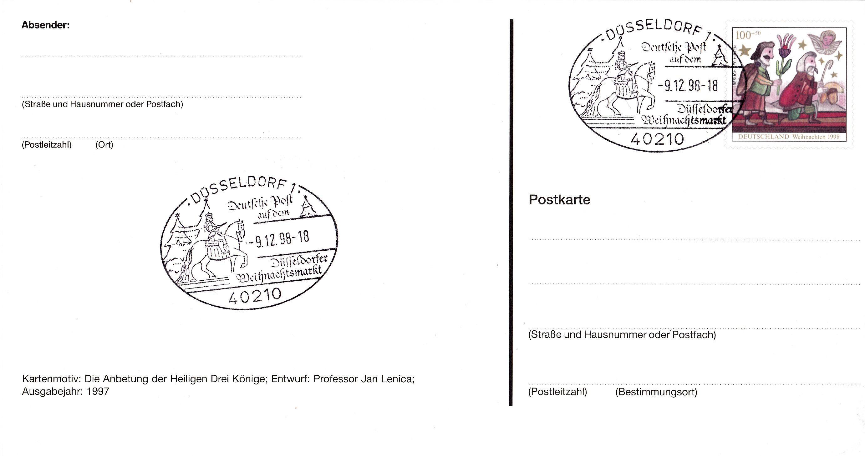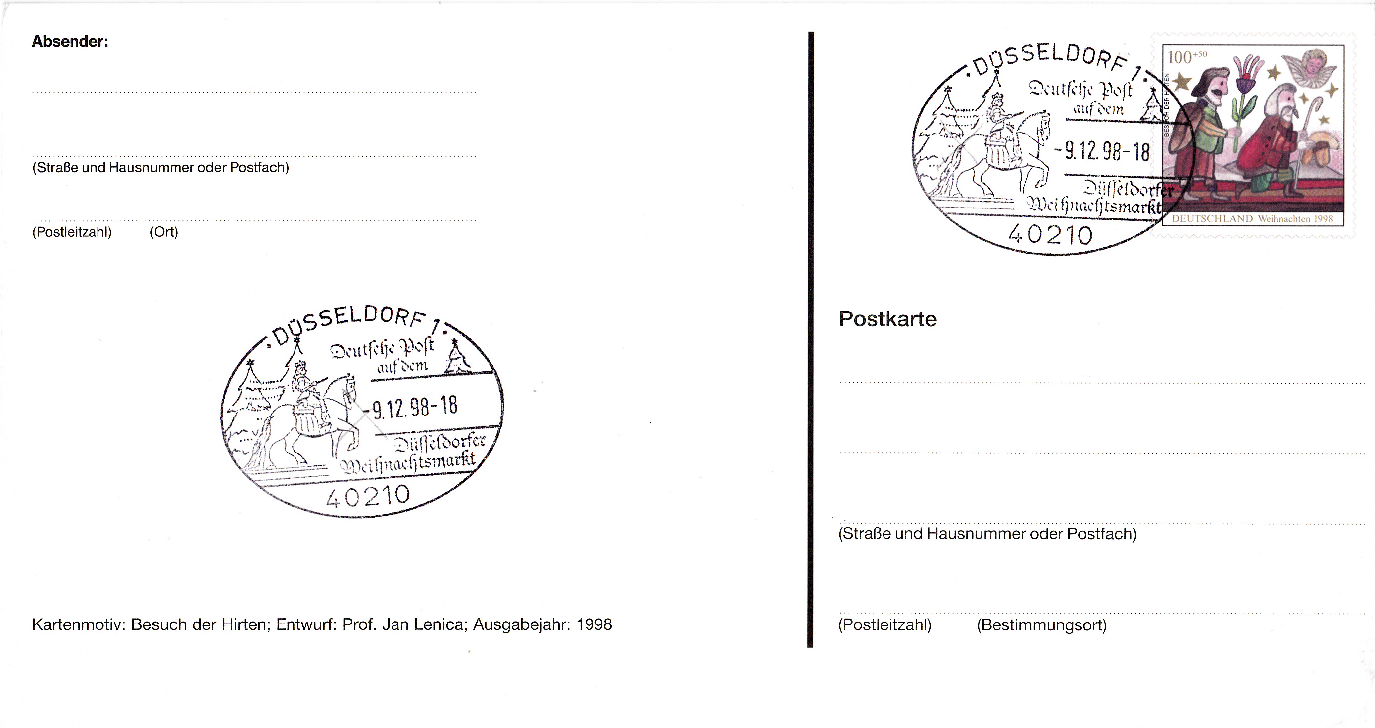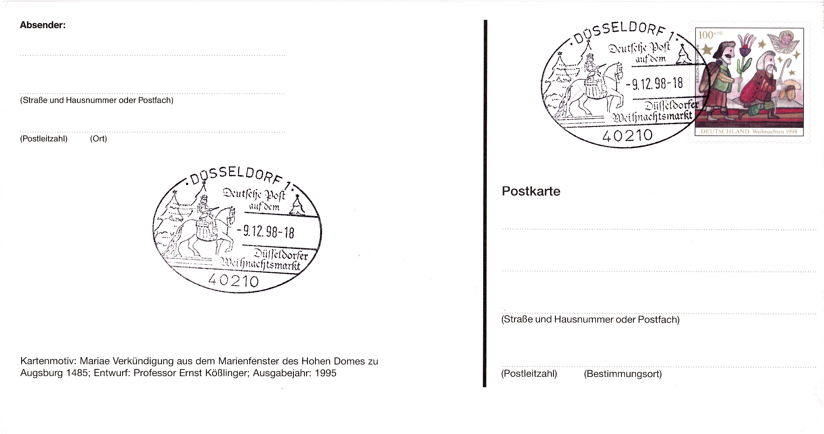 1998 gab es bei der Deutschen Post Sonderpostkarten Weihnachten mit dem Wertzeicheneindruck der Weihnachtsmarken 1998 (MiNr 2023). Rückseitig wurden die fünf Motive der Weihnachtsmarken 1994 bis 1998 gedruckt.