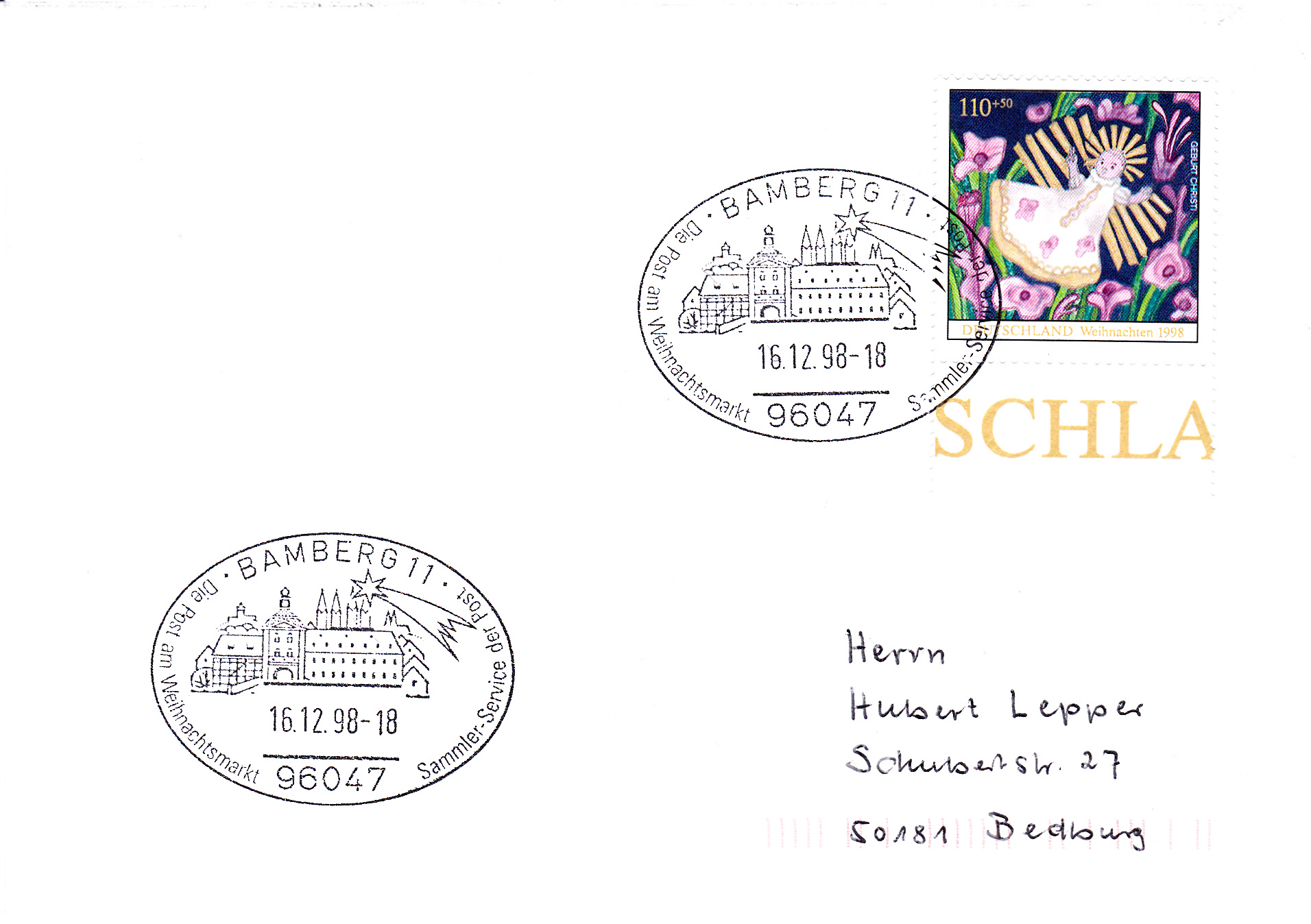 Sonderstempel vom 16.12.1998 aus Bamberg zum Weihnachtsmarkt.