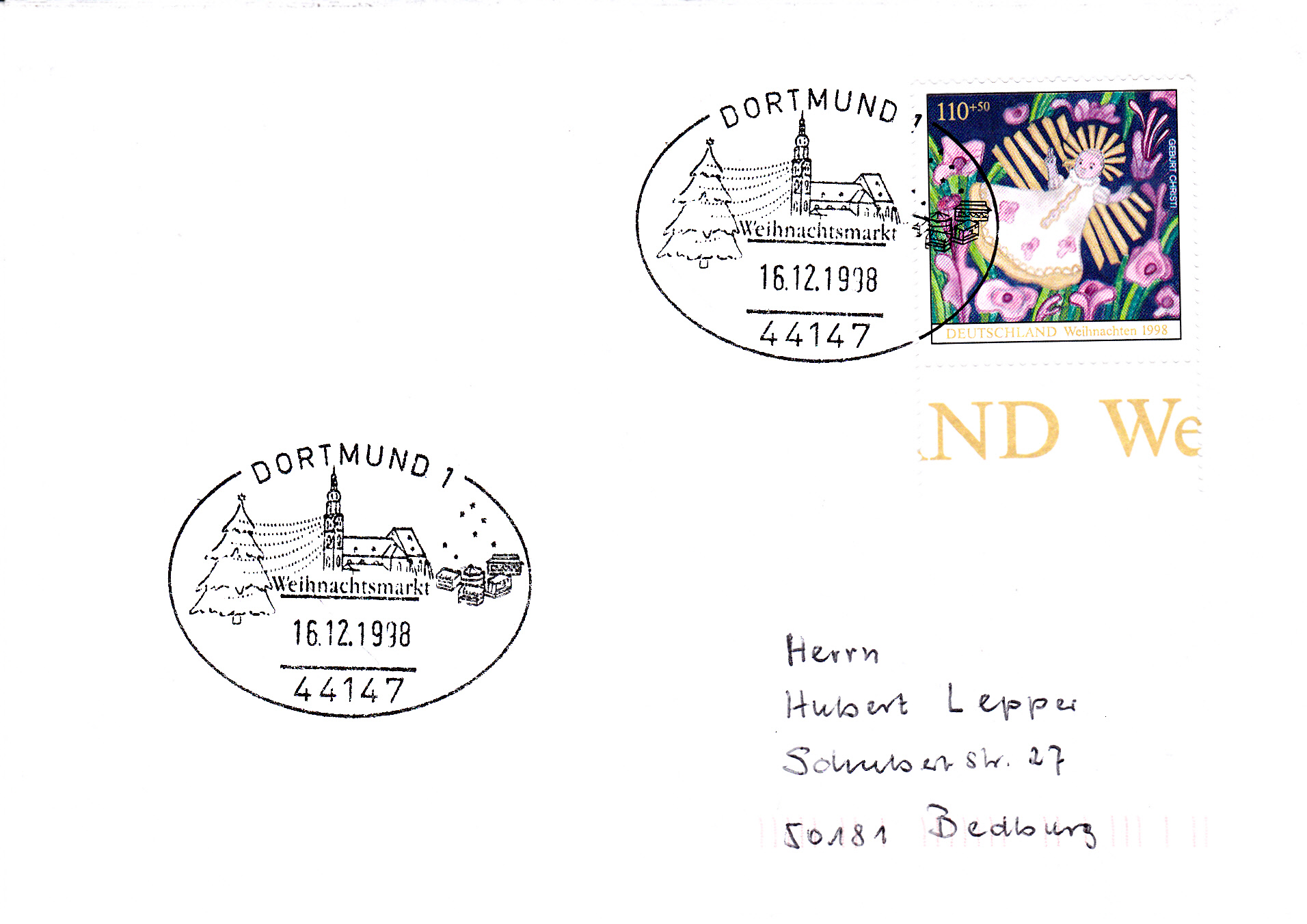 Sonderstempel aus Dortmund vom 16.12.1998 zum Weihnachtsmarkt in Dortmund.