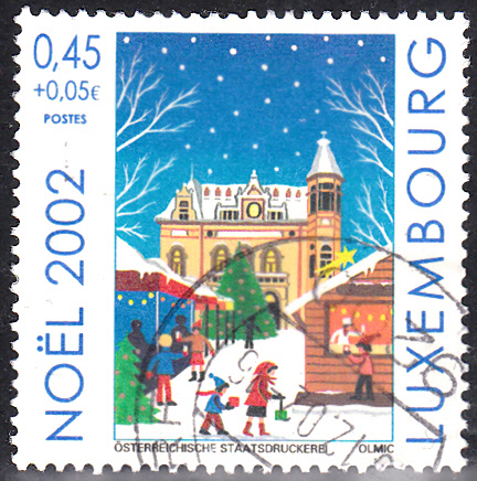 Im Markenbild der Weihnachtsmarke 2002 aus Luxemburg (MiNr 1592) wird der Weihnachtsmarkt auf dem Place d’Armes in der Stadt Luxemburg dargestellt.
