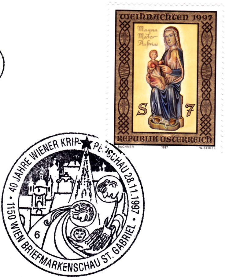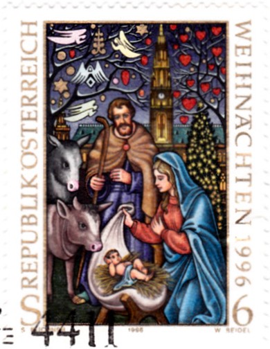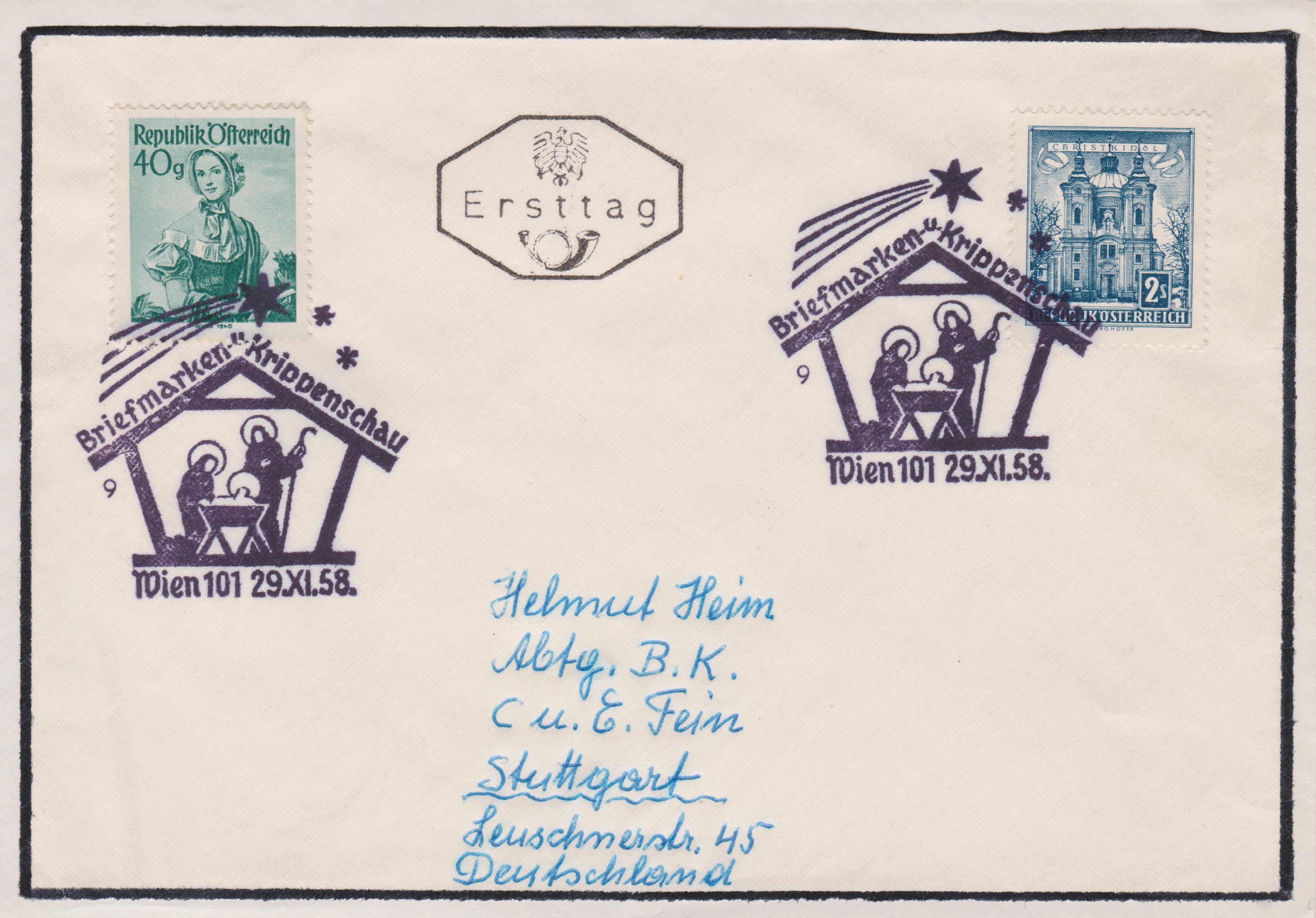 Auf diesem Brief vom14.2.1985 von Gr. Siegharts nach Helmbrechts wurde die Weihnachtsmarke 1981 aus Österreich (MiNr 1691) mit einer Weihnachtskrippe aus Maisstroh in einer Mischfrankatur verklebt. Das Porto betrug für einen Brief von 50 bis 100g ins Ausland 17 Schilling (1.3.1982 bis 31.1.1986).