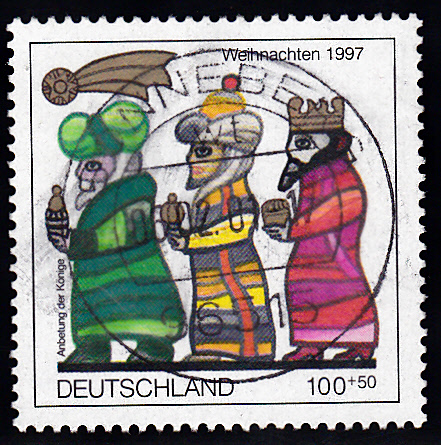Hier eine der beiden Weihnachtsmarken 1997 der Deutschen Post ( MiNr 1959) mit einer Darstellung "Anbetung der Heiligen Drei Könige".