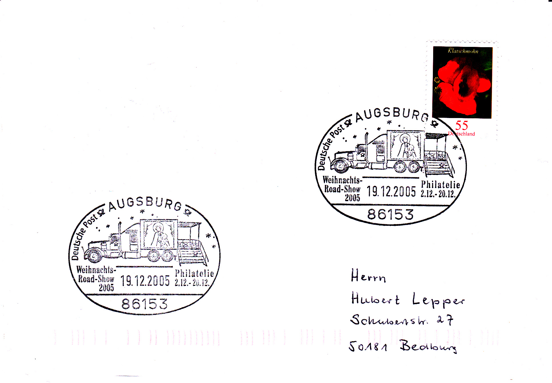 Die Weihnachts-Road-Show war dann offensichtlich am 8.12.2005 in 28307 Bremen, wie dieser Sonderstempel belegt.