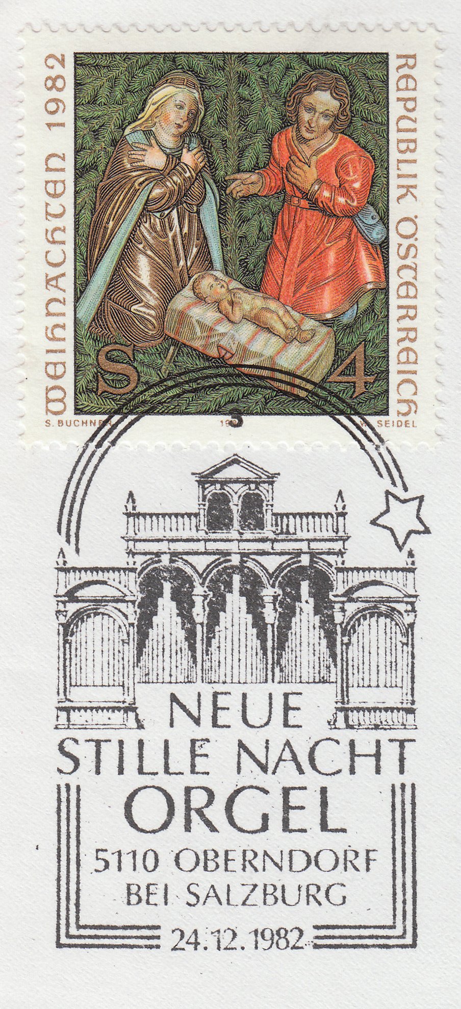 Vor diesem Hintergrund hatte sich Oberndorf zu Weihnachten 1982 eine "NEUE STILLE NACHT ORGEL", wie mit diesem Sonderstempel am Heiligen Abend passend auf der österreichischen Weihnachtsmarke 1982 dokumentiert, redlich verdient: