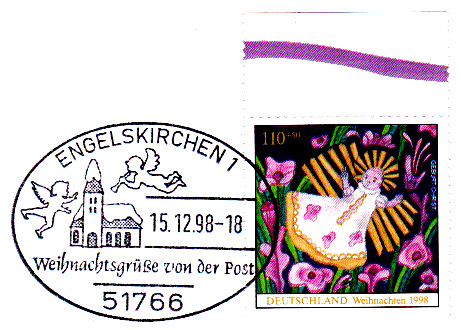 Ein weiterer Sonderstempel aus Engelskirchen vom 15.12.1998 mit zwei fliegenden Engel.