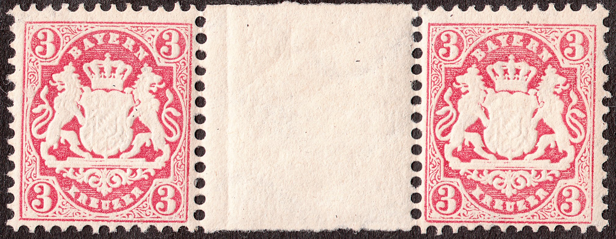 Hier ein Zwischenstegpaar waagerecht der Wertstufe zu 3 Kreuzer, katalogisiert als MiNr. 33 ZW: