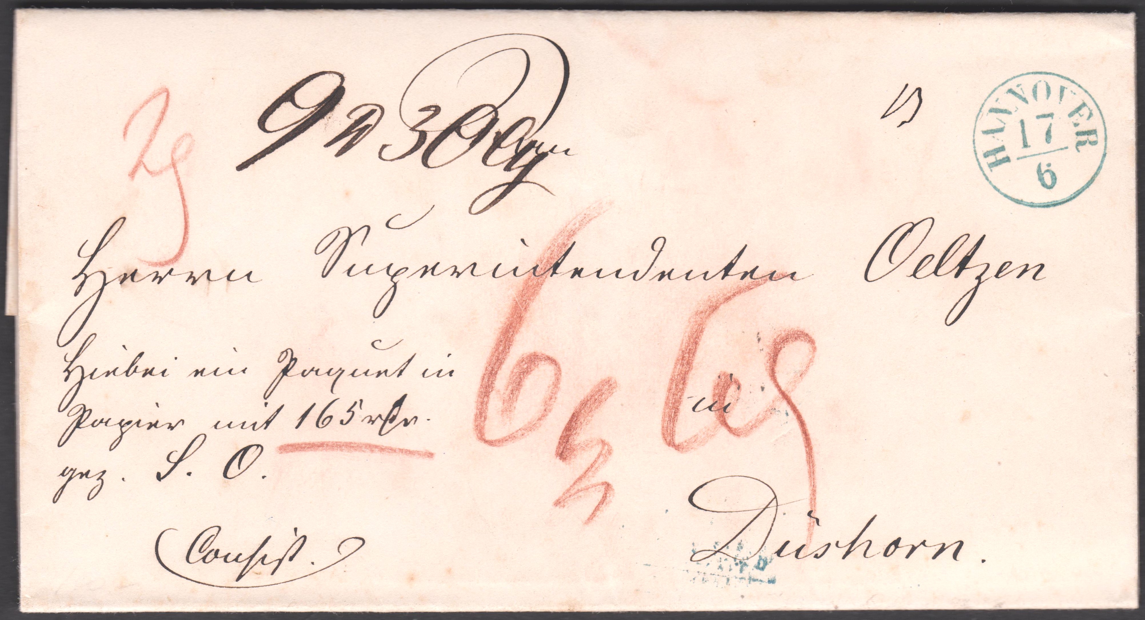 Foren-Übersicht Fragen und Diskussion Deutschland Deutschland bis 1945 Altdeutschland Hannover Hannover - Vorphilatelie bis 29.11.1850 Brief von HANNOVER nach Dürhorn