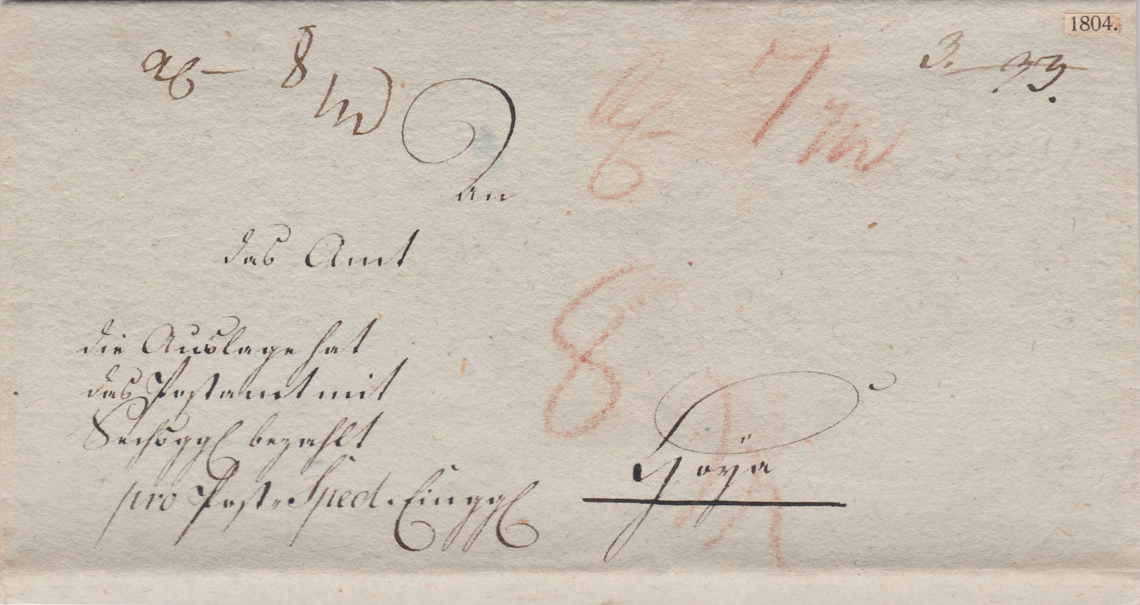 In Hoya angekommen erhielt der dortige Beamte ebenfalls eine Gebühr von 1 ggr, so daß der Empfänger die in Rötel vermerkten "8 ggr" zu zahlen hatte.