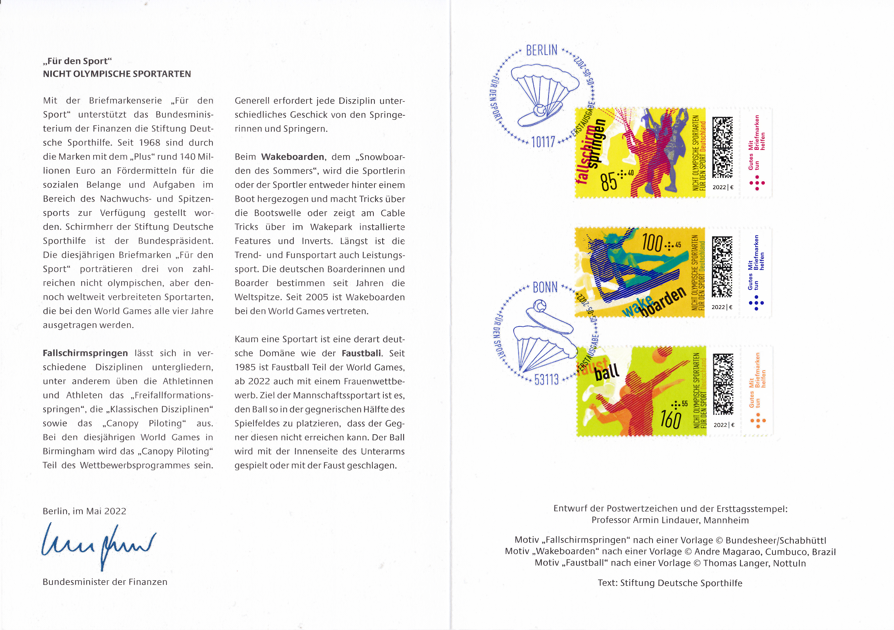 In der Serie "Für den Sport" 2022 mit nicht olympischen Sportarten gibt es auch eine Marke (MiNr 3684) zum Thema "Wakeboarden". Hier zeige ich eine Marke vom Eckrand mit EAN-Codierung.