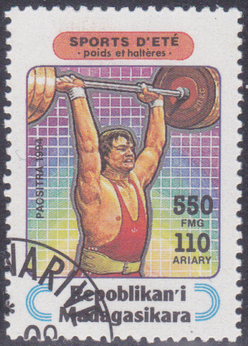In Madagaskar ist diese Marke (MiNr 1712) mit einem Gewichtheber erschienen.