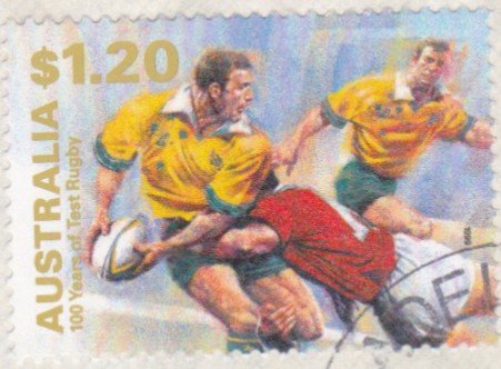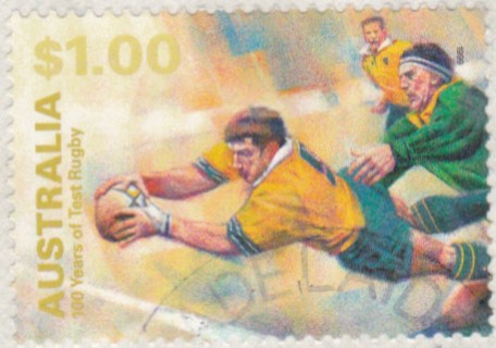 Die Marken aus Australien zum Jubiläum "100 Jahre Teilnahme an internationalen Rugbymeisterschaften" hat Rüdiger hier bereits postfrisch vorgestellt. Ich zeige dies nun gestempelt.
