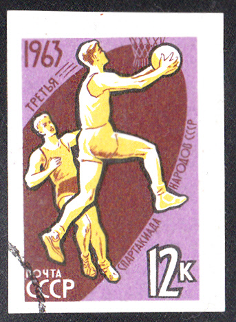 Am 27.Juni 1963 erschien in der Sowjetunion in einer Serie zur 3. Spartakiade der Völker der UdSSR diese Marke (MiNr 2776 B) mit der Abbildung einer Spielszene beim Basketball. Die Marke gab es am 27. Juli 1963 auch als gezähnte Variante (MiNr 2776 A).