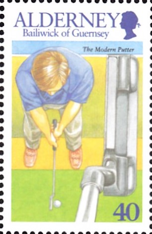 Auf einer weiteren Marke (MiNr 176) ist ein Golfspieler mit einem Putter abgebildet. Ein Putter ist ein Schläger, der im Golfsport verwendet wird, um relativ kurze und langsame Schläge auszuführen, mit der Absicht, den Ball aus kurzer Entfernung in das Loch zu rollen.
