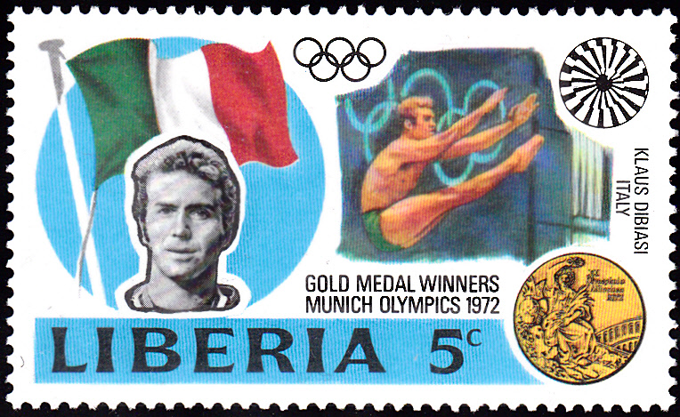 In Liberia erschien in einer Serie mit Goldmedaillengewinner bei den Olympischen Sommerspielen in München diese Marke (MiNr 855) mit dem mehrfachen Olympiasieger im Turmspringen Klaus Dibiasi.