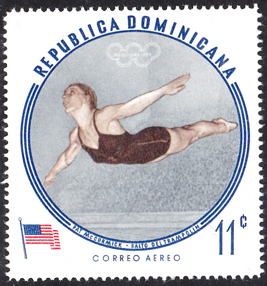 In einer Serie aus der Dominikanischen Republik mit Olympiasieger 1956 gibt es eine Marke (MiNr 729 A) mit Patricia McCormick, der Olympiasiegerin im Kunstspringen und im Turmspringen bei den Olympischen Spielen 1952 und 1956.