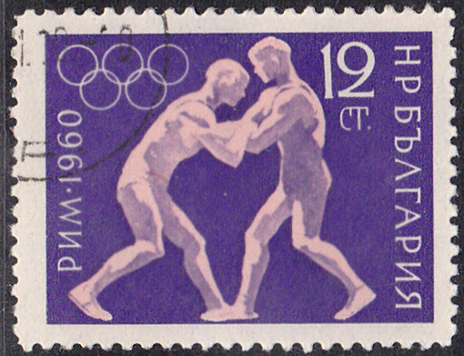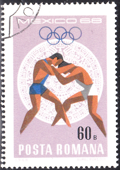 Hier eine Marke aus Rumänien (MiNr 2614), die in einer Markenserie zu den Weltmeisterschaften im griechisch-römischen Stil in Bukarest erschiene mit einer Kampfszene in dieser Stilart.