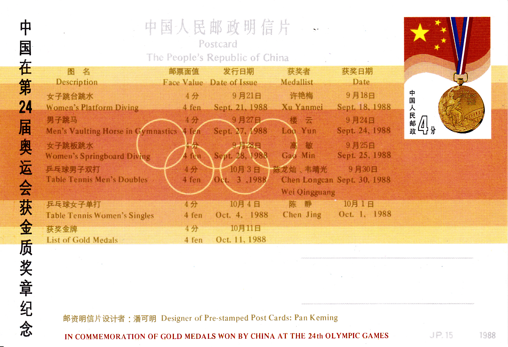 Zum Olympiasieg in Seoul ist in China diese Ganzsachen-Postkarte erschien.