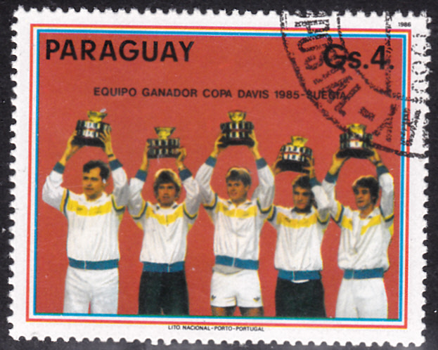 Auf dieser Marke aus Paraguay (MiNr 4034) wird die schwedische Davis-Cup-Mannschaft aus dem Jahre 1985. Das Team bestand aus Stefan Edberg, Mats Wilander, Anders Järryd, Joakim Nyström und dem Kapitän Hans Olsson.