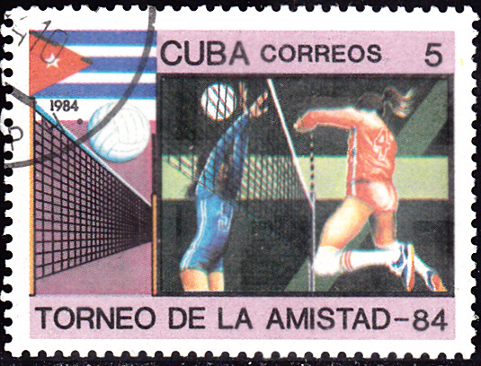 Es folgt eine weitere Marke aus Kuba (MiNr 2313) zum Thema Volleyball.