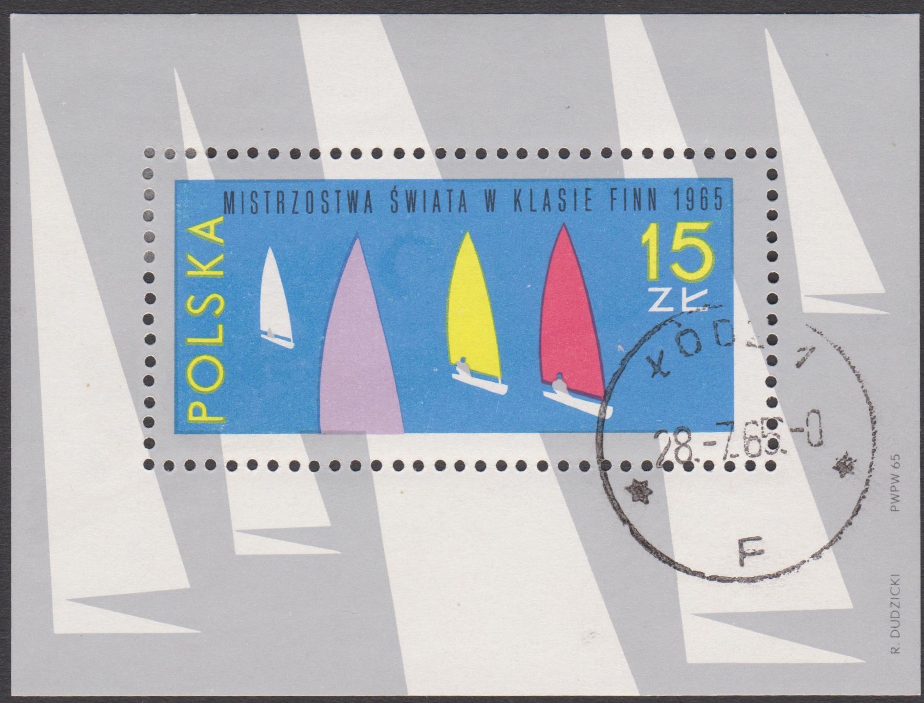 Polen Block 36 (MiNr. 1595) erschien zu den Segel-Weltmeisterschaften und zeigt Segelboote der Klasse "Finn-Dingi":