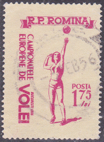 In Rumänien ist in einer Serie dazu diese Marke (MiNr 2184) mit einer Spielszene beim Volleyball der Frauen (Spielerin kurz vor der Annahme eines Balles).