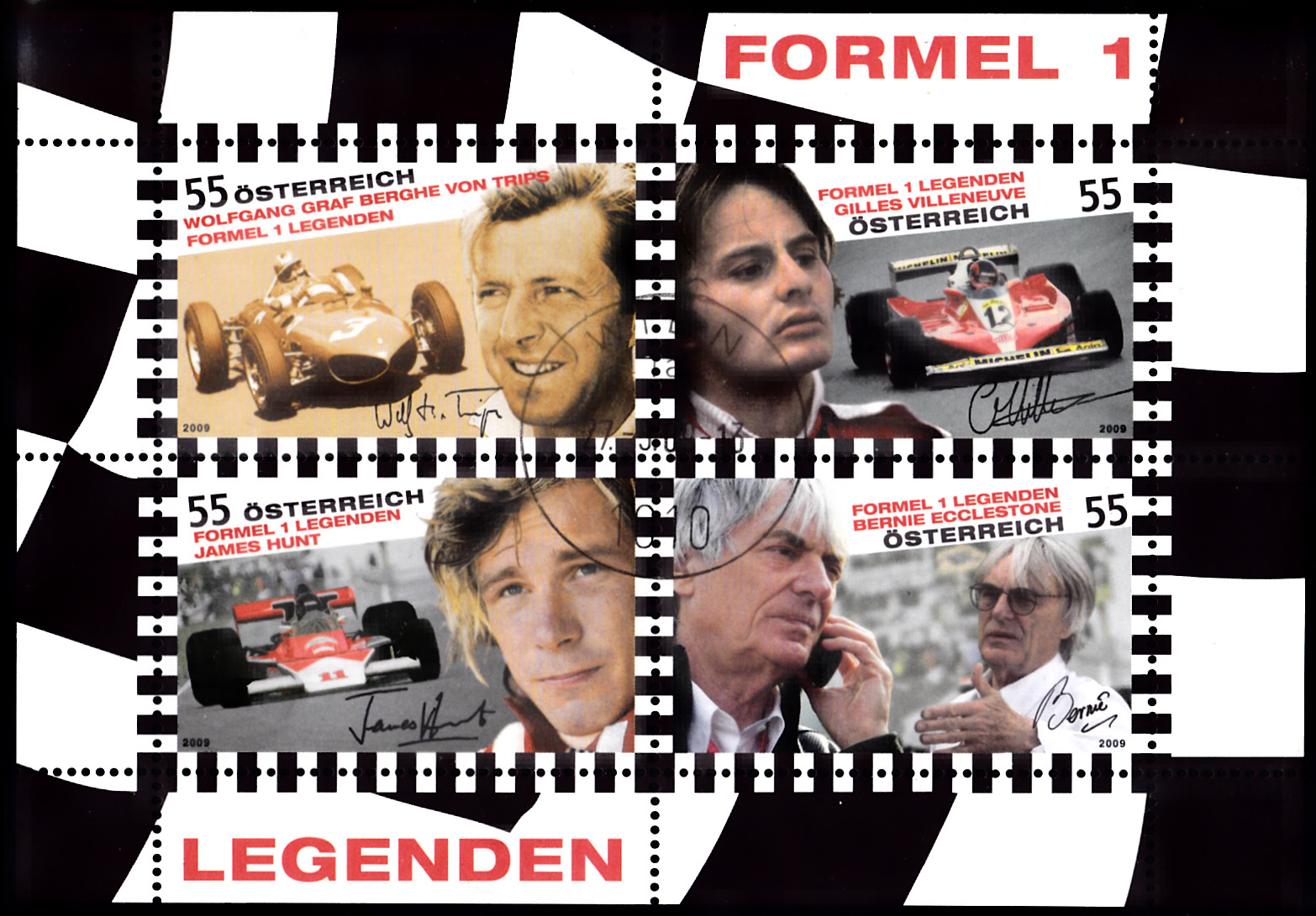 In Österreich ist im Jahre 2009 zum ersten Weltmeistertitel im Jahre 2008 diese Marke (MiNr 2794). Sie zeigt Lewis Hamilton und einen McLaren-Mercedes-Rennwagen.
