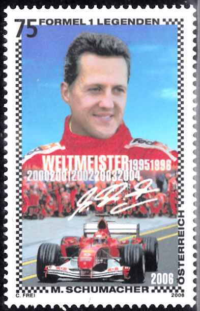 In der Reihe "Formel-1-Rennfahrer" ist in Österreich auch eine Marke (MiNr 2662) mit Michael Schumacher erschienen.