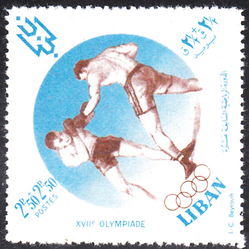 Eine Marke aus dem Libanon zu den Sommerspielen in Rom (MiNr 695) zeigt eine Szene bei einem Boxkampf.