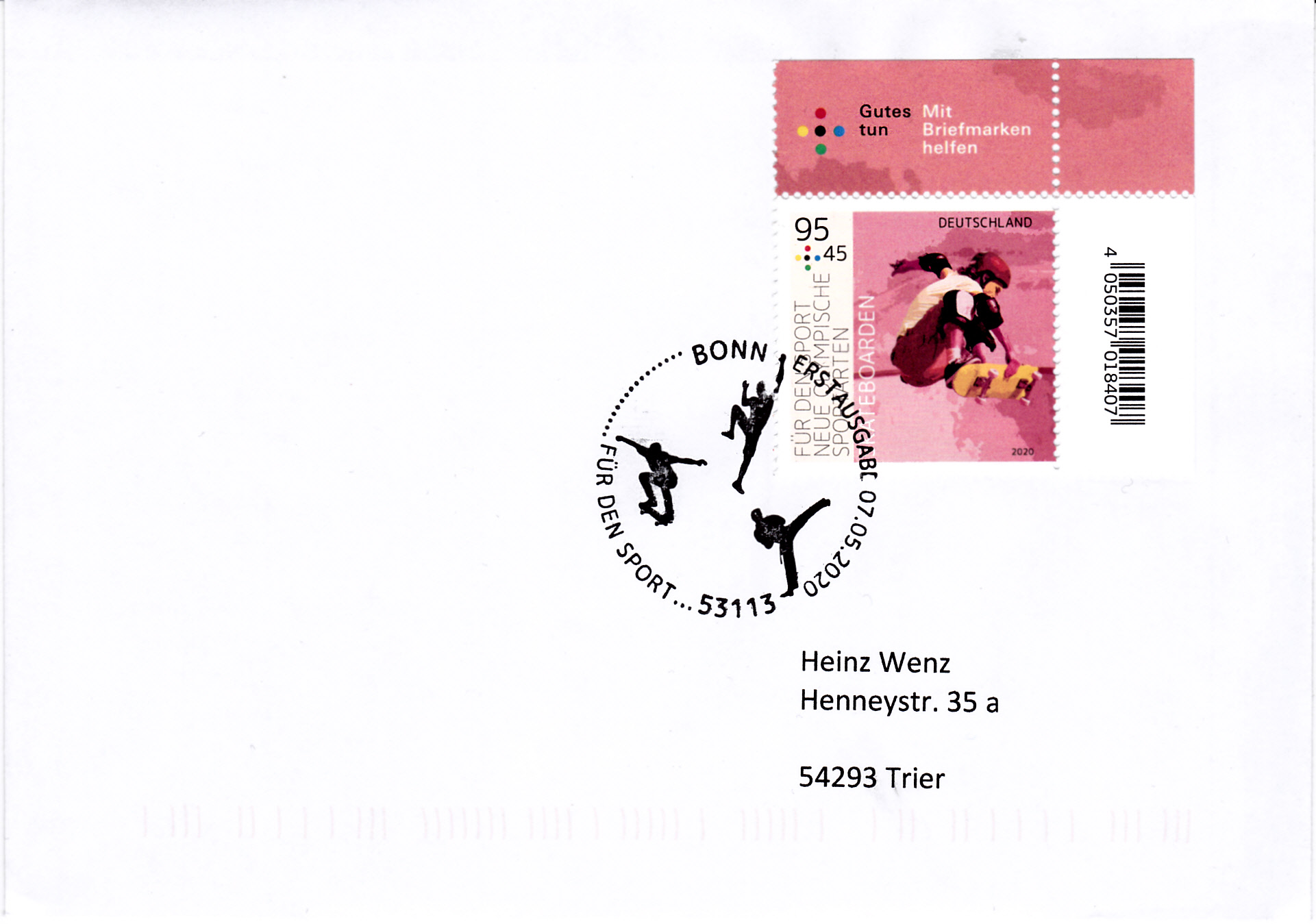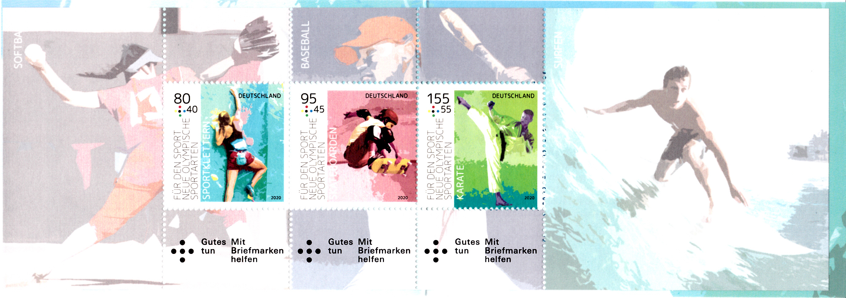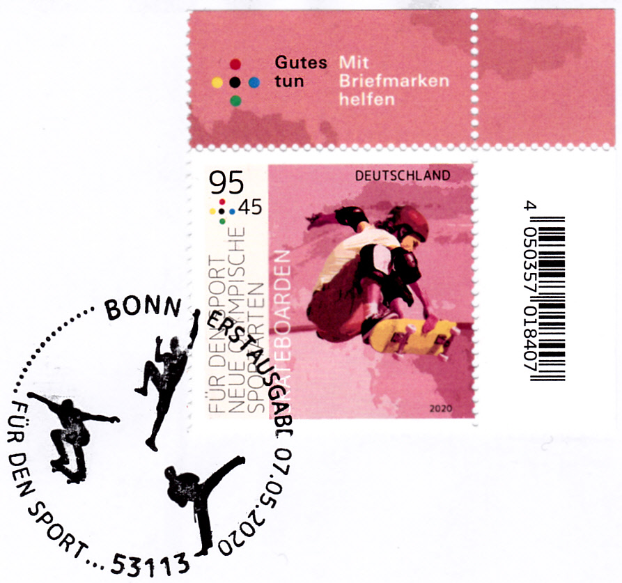 Bei der Deutschen Post erschien in der Serie "Für den Sport" eine Marke (MiNr 3543) zur neuen olympischen Sportart Skateboarden.