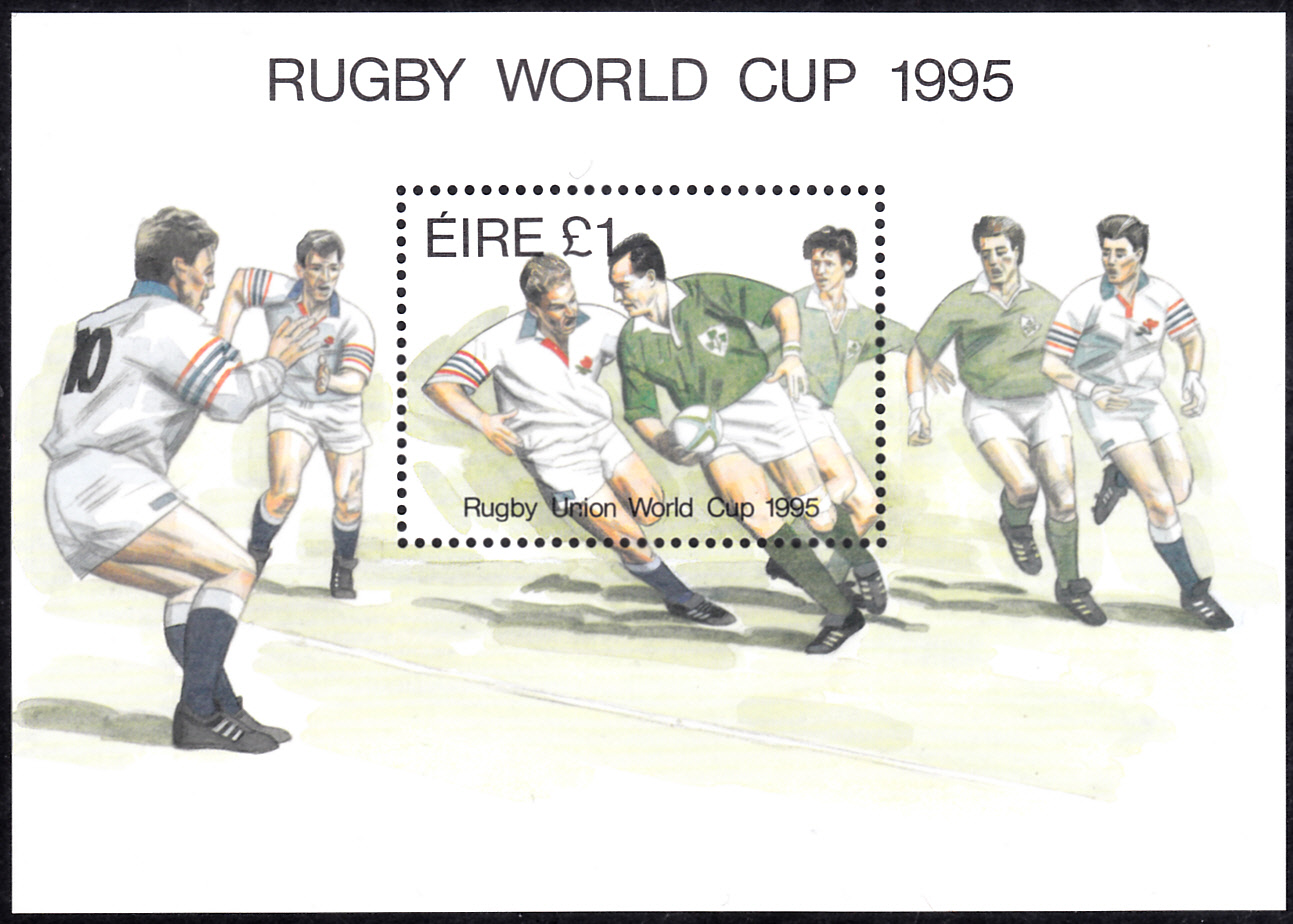 In Irland erschien zu den Weltmeisterschaft diese Marke zu 32 Pence (MiNr 894) mit einer Spielszene aus einem Spiel Irland - England.