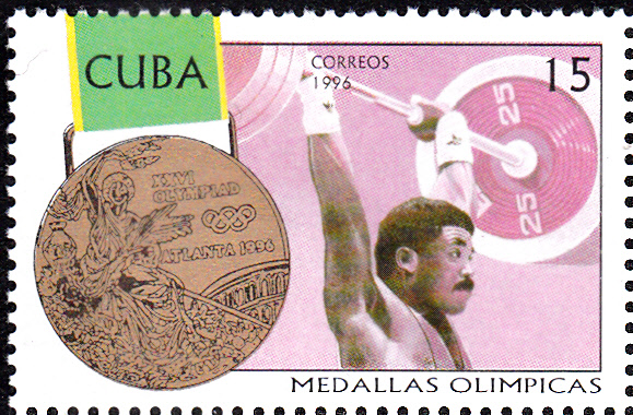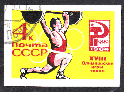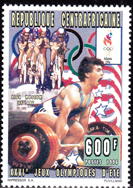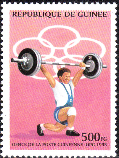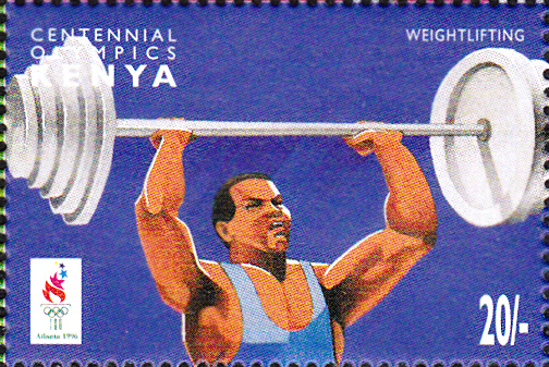 Diese Marke aus Weißrussland (MiNr 152), erschienen zu den Olympischen Spielen 1996, bildet einen Gewichtheber ab.