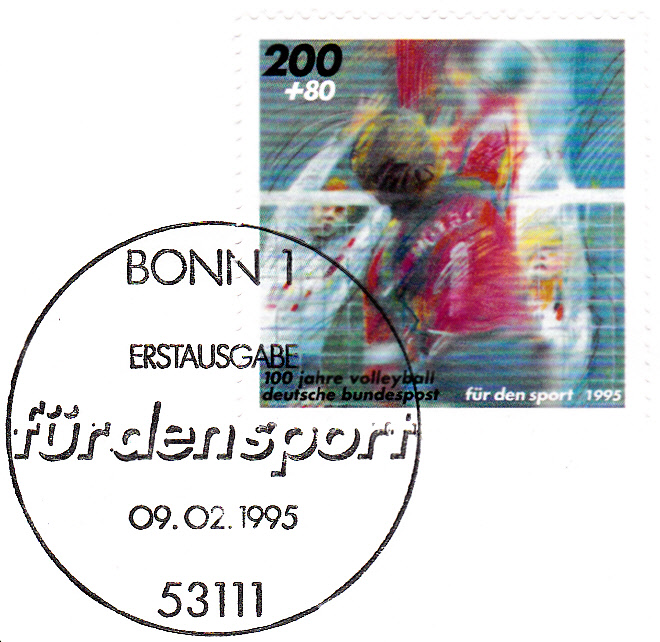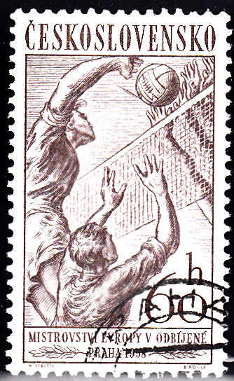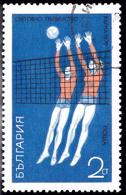 Zu den Olympischen Spielen 1984 in Los Angeles erschien in den USA auch eine Marke mit Volleyballspielerinnen am Netz im Markenbild (MiNr 166).