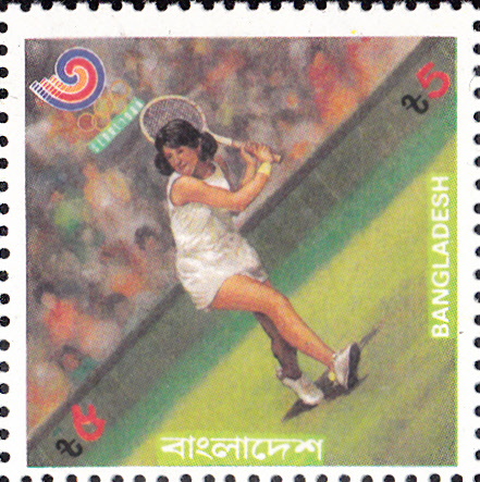 Hier eine Marke aus Bangladesch (MiNr 279) zu den Olympischen Spielen in Seoul mit einer Tennisspielerin.