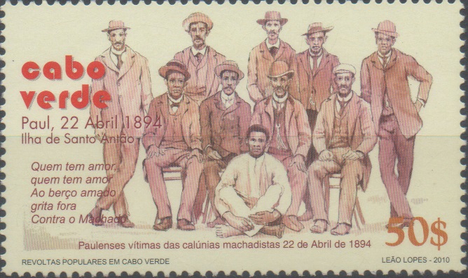 Bis 1975 war Kap Verde eine portugiesische Kolonie. Die Marke zeigt ein Portrait von Amilcar Cabral, einem führenden Politiker auf dem Weg in die kapverdische Unabhängigkeit. Er starb 1973 bei einem Putschversuch des Militärs und erlebte die Unabhängigkeit seiner Heimat nicht mehr. Sein Todestag ist heute der kapverdische Nationalfeiertag. Der Flughafen auf Sal, auf dem fast alle internationalen Flüge eintreffen,trägt seinen Namen.