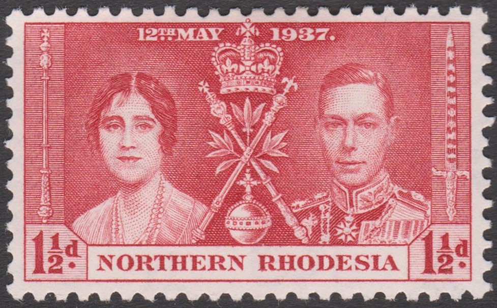 Nord-Rhodesien MiNr. 22 erschien am 12.05.1937 aus Anlaß der Krönung von König Georg VI. und Königin Elisabeth: