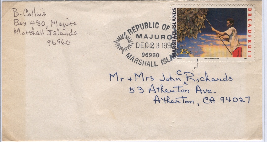 frucht. Brief aus der mit 26000 Einwohnern größten Stadt und Hauptstadt Majuro. Die Marke auf dem Brief zeigt